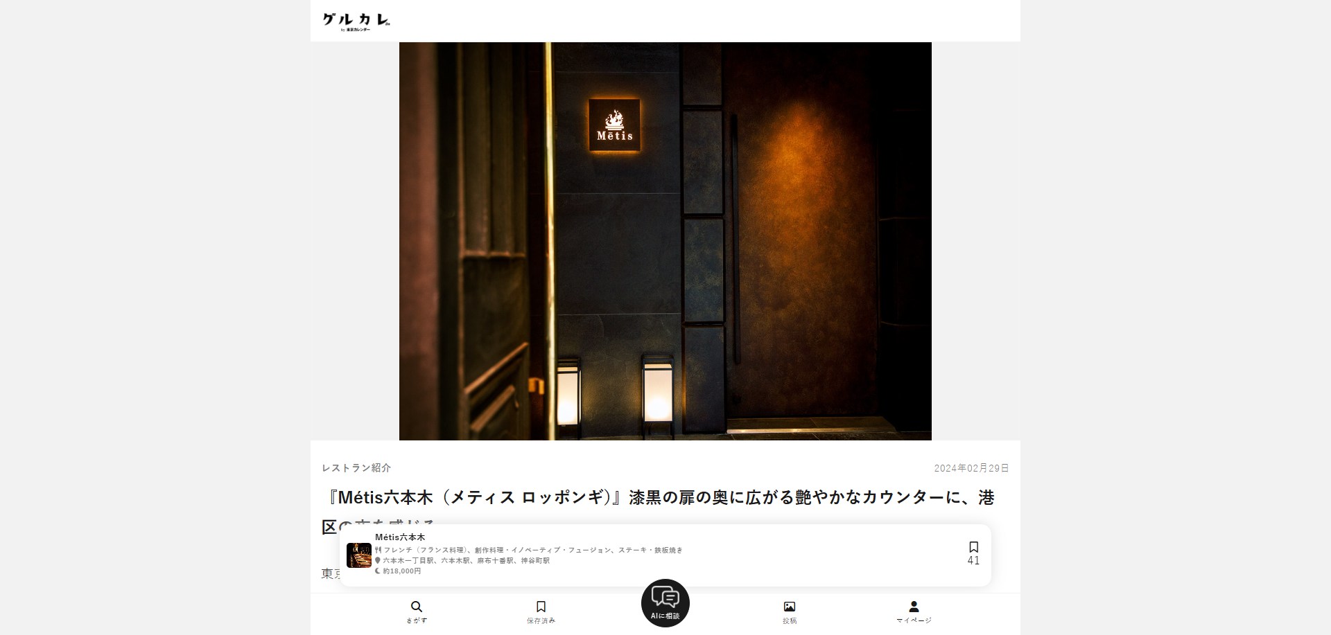 グルメカレンダー|『Métis六本木(メティス ロッポンギ)』漆黒の扉の奥に広がる艶やかなカウンターに、港区の夜を感じる